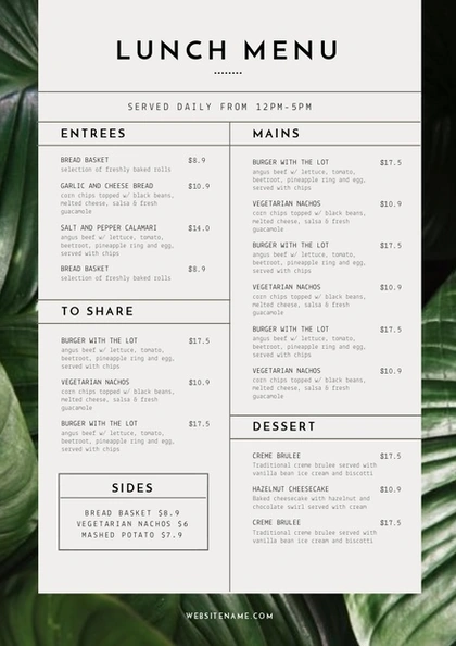西餐菜单